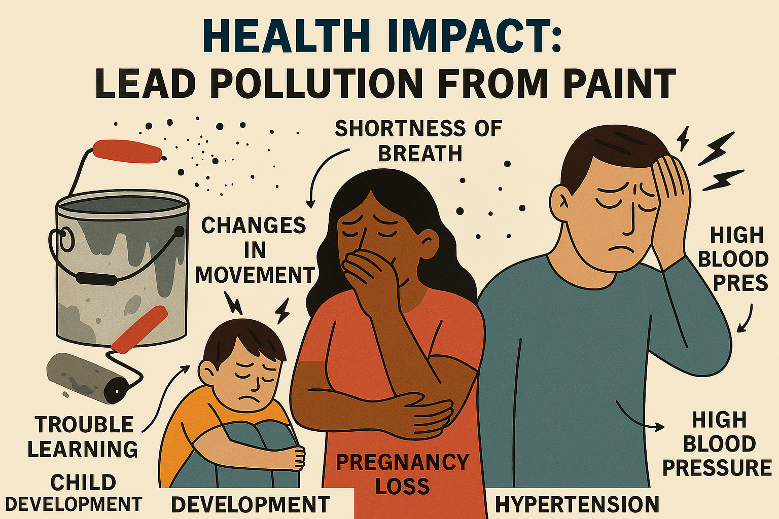 Lead based paint film peels or cracks, it releases fine lead dust, which can easily enter the body with the breath. Breathing in this dust allows lead particles to enter the lungs and then the bloodstream. Lead is a systemic toxicant that impacts every organ in the human body, with its effects posing particularly severe risks to children and pregnant women. According to UNICEF and the Bangladesh Bureau of Statistics, the country indeed ranks 4th globally in terms of children affected by lead poisoning, with over 35 million children showing dangerously high lead levels in their blood.
